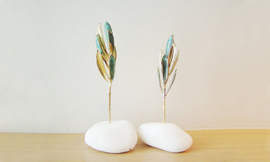 Each time it will be a different real olive branch twig on a different white stone, chosen and put together by my husband, Andreas.
