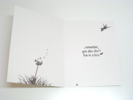 Inside of card reads: …REMEMBER YOU ALSO DON’T LIVE IN A BOX.