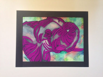 Watercolors on archival watercolor 90 lb paper; measures 8 1/2 x 11 inches and can be matted to fit 8 x 10 inch frames or 11 x 14 inch frames with additional mat.