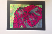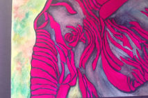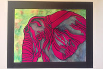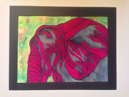 This hand-painted piece features a beautiful African elephant highlighted in magenta on a watercolor background!
