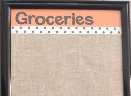 Handmade dry erase board for your grocery list! Keep your list on the fridge at all times so you never forget what you need. Just take a photo of it on your phone when you go shopping!