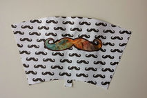 This hand painted coffee cup features a fun mustache pattern! Two options are available. The first is a hand marbled large mustache on a background of smaller patterned ones. The other is a silver handpainted large mustache on a purple geometric pattern.