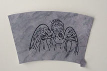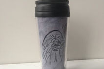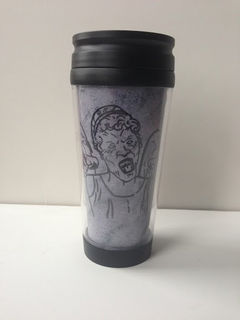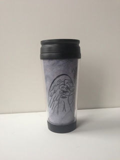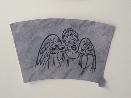 This hand painted coffee cup features a Weeping Angel in the midst of attack against a background of textured gray "granite" cardstock. Special care has been taken to ensure the background looks like real stone.