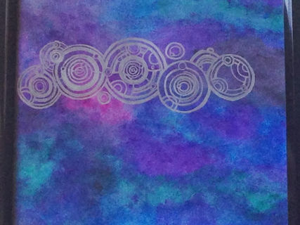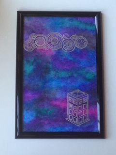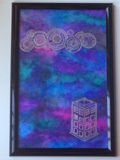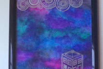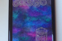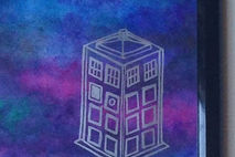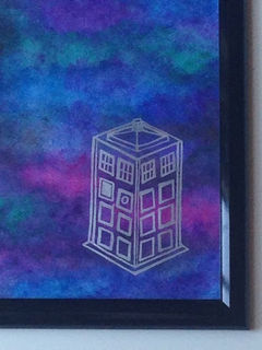 Keep organized in geeky style with this Gallifreyan & TARDIS dry erase note board. This hand painted board features a galaxy night sky background, with the TARDIS in silver and the Doctor's name written in circular Gallifreyan along the top.