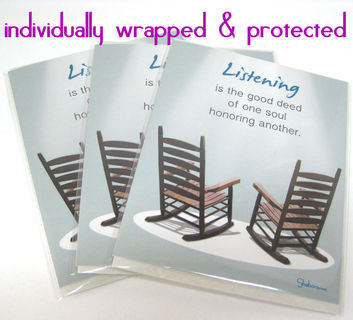 Each design is created using traditional printing presses giving you a better image quality. They are 4 1/4” X 5/1/2” in size (A2), printed on heavy quality 100 lb. card stock and each comes with a 4 3/8" X 5 3/4" earth-toned (called Willow) 80 lb. envelope and protective crystal clear pouch. All materials Shaboo Prints uses are recycled and inks are soy-based to reduce the environmental impact. Shaboo Prints also supports small business and consciously does not contract with large vendors, except for the USPS, which can provide you with more affordable shipping rates.