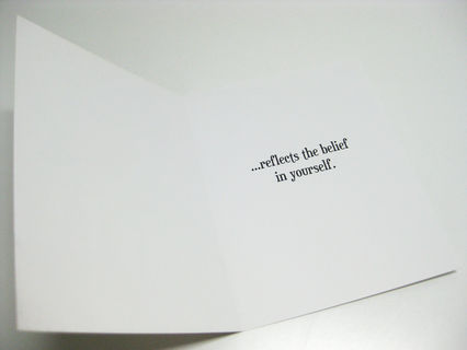 Inside of the card reads: …REFLECTS THE BELIEF IN YOURSELF.