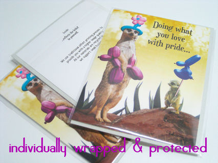 Each design is created using traditional printing presses giving you a better image quality. They are 4 1/4” X 5/1/2” in size (A2), printed on heavy quality 100 lb. card stock and each comes with a 4 3/8" X 5 3/4" earth-toned (called Willow) 80 lb. envelope and protective crystal clear pouch. All materials Shaboo Prints uses are recycled and inks are soy-based to reduce the environmental impact. Shaboo Prints also supports small business and consciously does not contract with large vendors, except for the USPS, which can provide you with more affordable shipping rates.