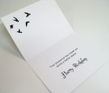 Inside of card reads: YOUR PRESENCE HAS MADE OUR WORLD A BETTER PLACE. HAPPY BIRTHDAY