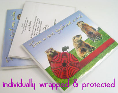 Each design is created using traditional printing presses giving you a better image quality. They are 4 1/4” X 5/1/2” in size (A2), printed on heavy quality 100 lb. card stock and each comes with a 4 3/8" X 5 3/4" earth-toned (called Willow) 80 lb. envelope and protective crystal clear bag. All materials Shaboo Prints uses are recycled to reduce the environmental impact. Shaboo Prints also supports small business and consciously does not contract with large vendors, except for the USPS, which can provide you with better shipping rates.