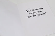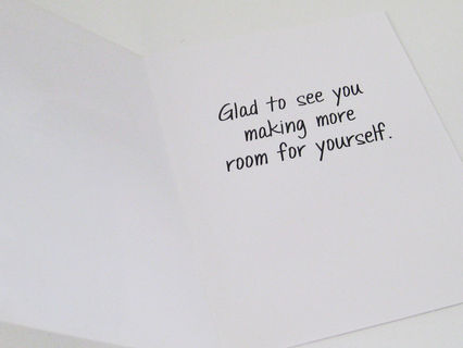 Inside of the card reads: GLAD TO SEE YOU MAKING MORE ROOM FOR YOURSELF