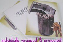 Each design is created using traditional printing presses giving you a better image quality. They are 4 1/4” X 5/1/2” in size (A2), printed on heavy quality 100 lb. card stock and each comes with a 4 3/8" X 5 3/4" earth-toned (called Willow) 80 lb. envelope and protective crystal clear bag. All materials Shaboo Prints uses are recycled to reduce the environmental impact. Shaboo Prints also supports small business and consciously does not contract with large vendors, except for the USPS, which can provide you with better shipping rates.