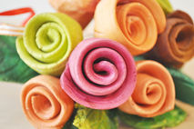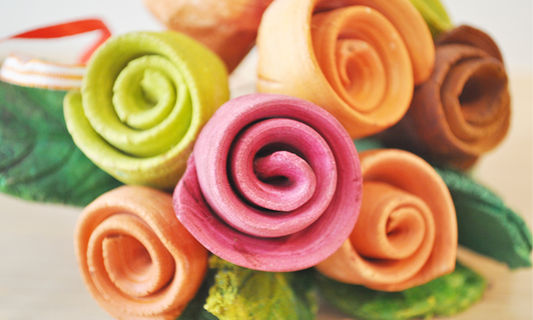 A lovely, colourful bouquet of ceramic roses with many green leaves, completely handmade and unique, by our shop member, Chroma