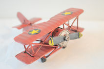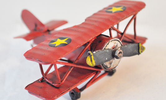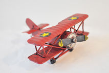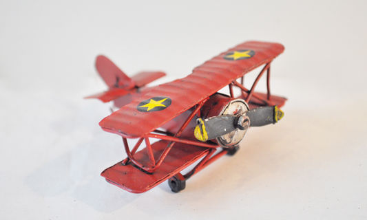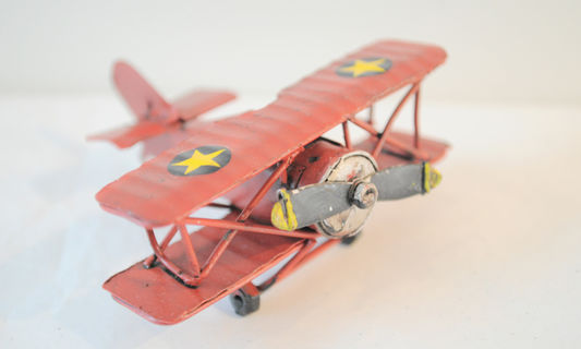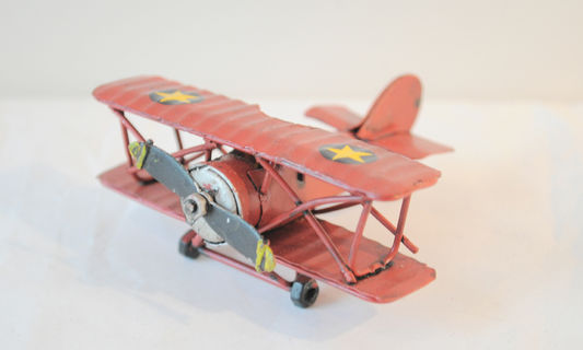 This is an amazing, miniature reproduction of a retro aeroplane, handmade and hand painted, with movable propeller, and two stars painted on the upper wings. A very affordable , collectible item.