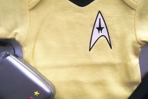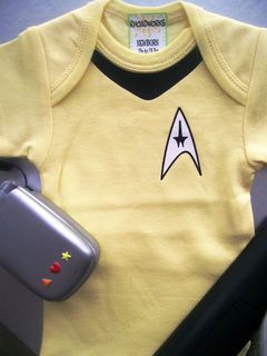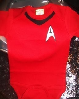 My Star Trek design looks out of this world on Red! So if you have a little Trekky, beam this one up! It would be great for your own little future Starfleet officer, as a shower gift, or Halloween costume!. Looks great in other colors too.