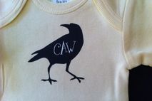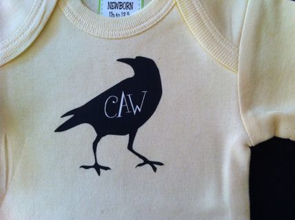 You'll have something to Crow about with my iconic Black Crow silhouette. Can be ordered as a Bodysuit or Tee. He's saying "Caw", but you can add any word you want!