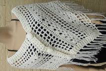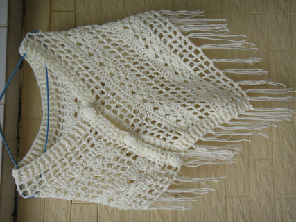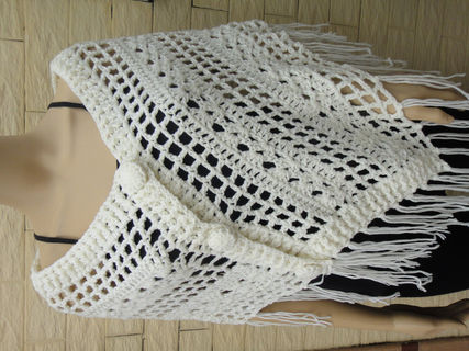 Ivory Triangle Crochet Shawl Wrap with Button Down Winter Accessory