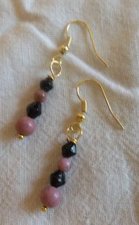These rhodonite & black glass earrings are 1 3/4 inch long from top of the gold-filled french hook. They were designed to go with the rhodonite & black glass necklace, also available in my shop.