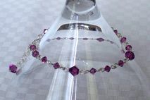 This bracelet shows off the February Birthstone (Amethyst) in an elegant but simple way featuring Swarovski Crystal bicones strung on silver-plated wire.
