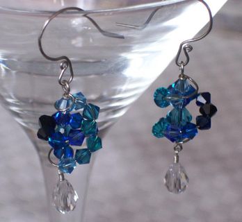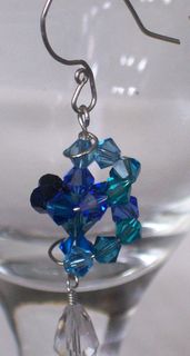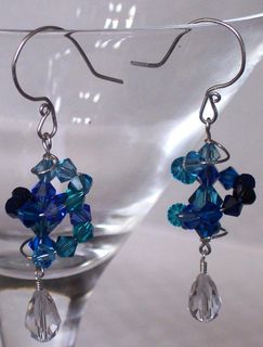 The crystals are strung on Sterling Silver wire, the core on Sterling Silver wire, the teardrop on a Sterling Silver headpin. The ear-wire is hand made from 22 gauge Sterling Silver Wire.