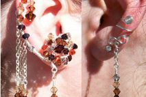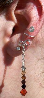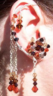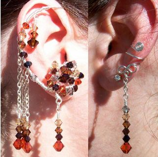 Entirely hand-crafted with Silver-Plated wire/chain and Swarovski Crystal (4mm/6mm bicones in colors: Black Diamond, Jet(Black), Light Colorado Topaz, Smoked Topaz, Mocca, and Indian Red), these ear-enhancements will call a lot of attention; the photos speak for themselves!