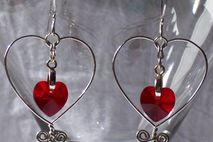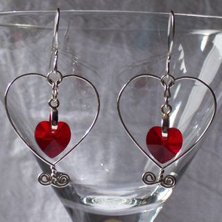 These made-to-order earrings feature hand-tooled wire hearts and Swarovski Crystal** hearts - in your choice of many colors available, and your choice of Sterling Silver or Silver Plated wire*!