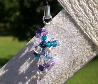 swarovski crystal beads, sterling silver wire, sterling silver headpin, silver plated phone strap