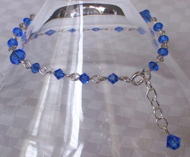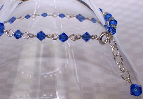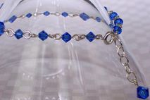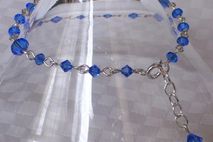 This bracelet shows off the September Birthstone (Sapphire) in an elegant but simple way featuring Swarovski Crystal bicones strung on silver-plated wire.