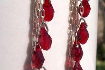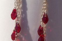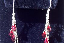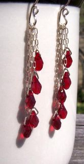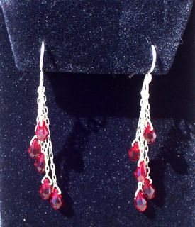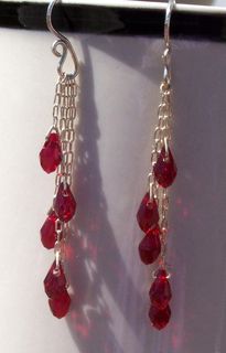 The drops are Siam* Swarovski Crystal**, all metal is sterling silver. The ear-wires are hand-made in 20-gauge sterling silver wire. (also available in smaller gauges)