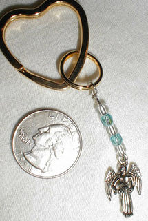 Silver tone angel is about three fourths of an inch long with four tiny glass beads; total length is three and three quarters inches.