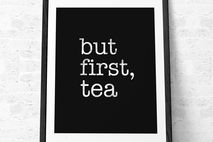 Minimal black and white tea print ideal for any room in your home or office. It has a vintage texture effect. It's a great present for any tea lover!