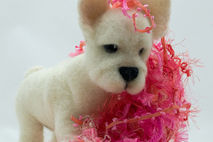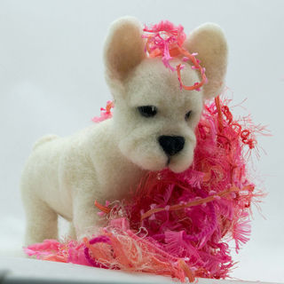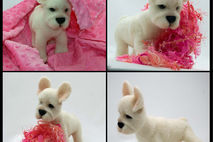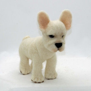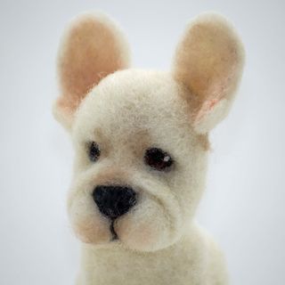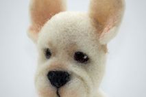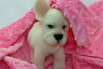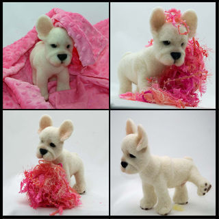 I met this little fellow at the vets office and had to create the needle felted, wool version of a French Bull Dog Puppy. Comical, charming, cute beyond words, so many adjectives for this wonderful, little dog.