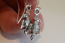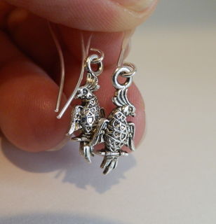 Tiny cute parrot earrings. The parrot is approximately 3/4" long; approximate length from top of french hook is 1 3/4."