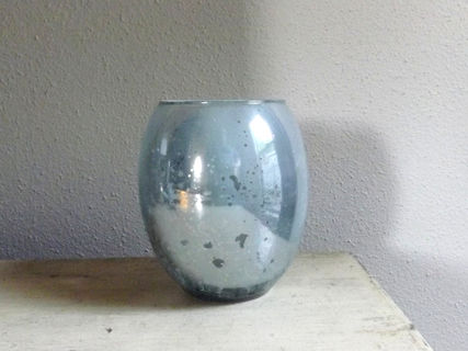 This mint blue mercury glass vase has been sealed for floral use, and is beautiful with or without flowers or candle light as a candle holder.