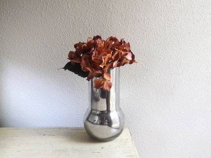 This mercury glass vase has a beautiful shape, and is hand painted and distressed for a beautiful mercury glass finish.