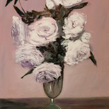 original oil painting signed white roses floral thick vase purpl