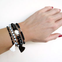 Boho Bracelet Set, Unisex Skull Beaded Bracelets