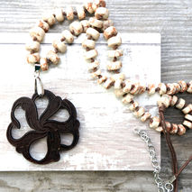 Walnut slice and Tibetan agate Pendant on Leather Cord
