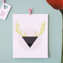 Paper Embroidered Antlers - 8x10 in Print - Neon Yellow Antlers